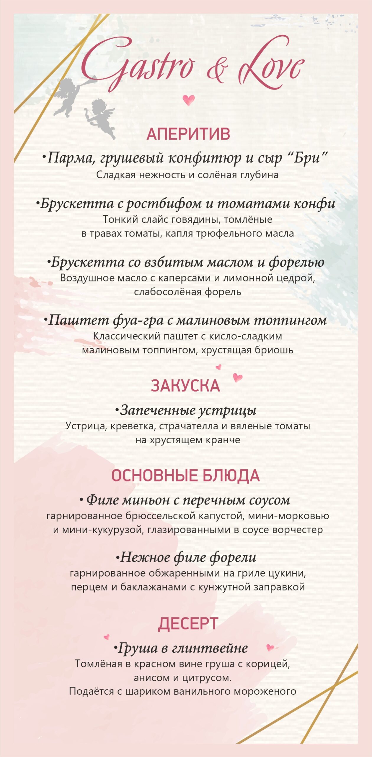 — ужин на двоих по выбранным сет-меню
