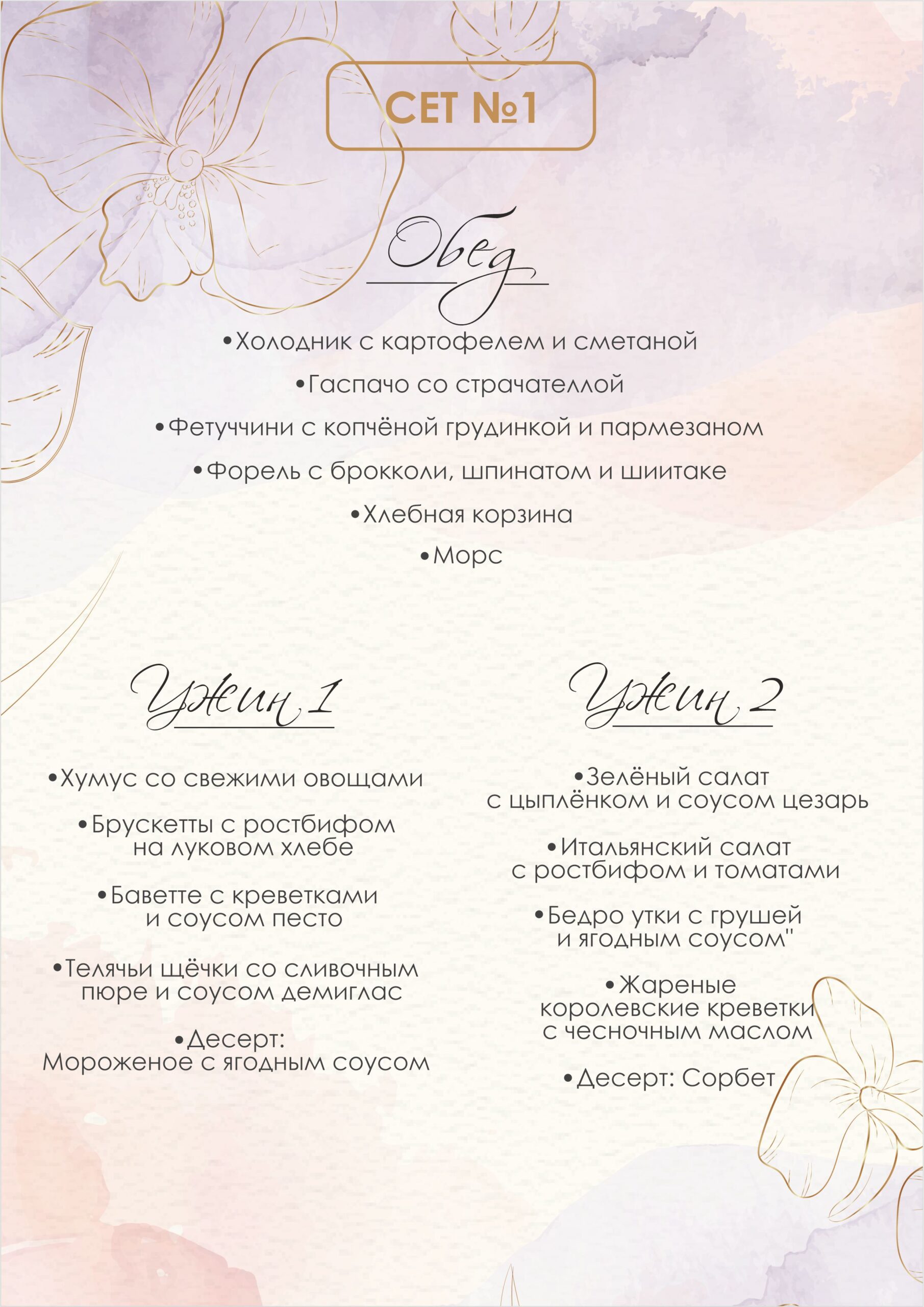 — романтический ужин в ресторане для двоих по сет-меню на выбор (сет 1 и сет 2)